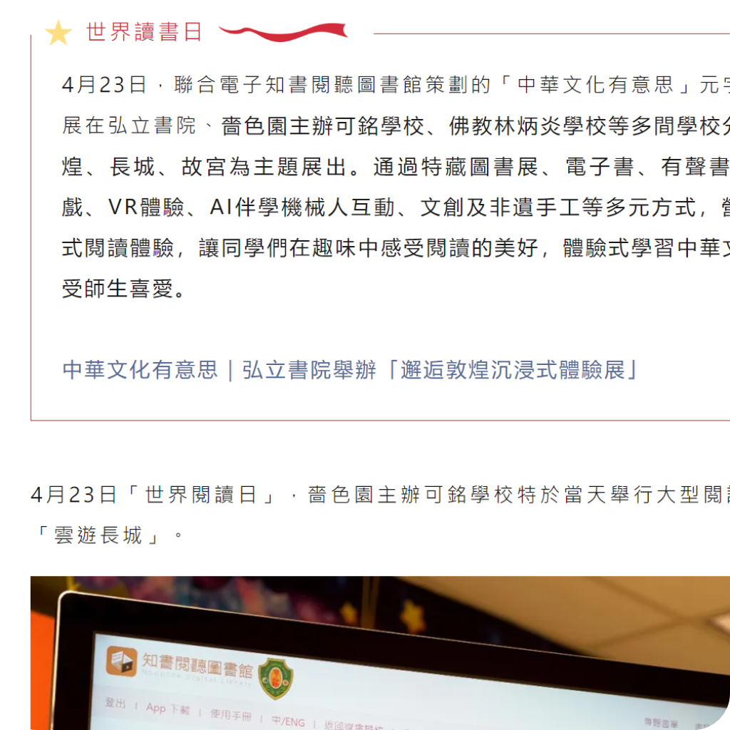 知識雜誌|不「紙」閱讀 可銘學校「雲遊長城」 |