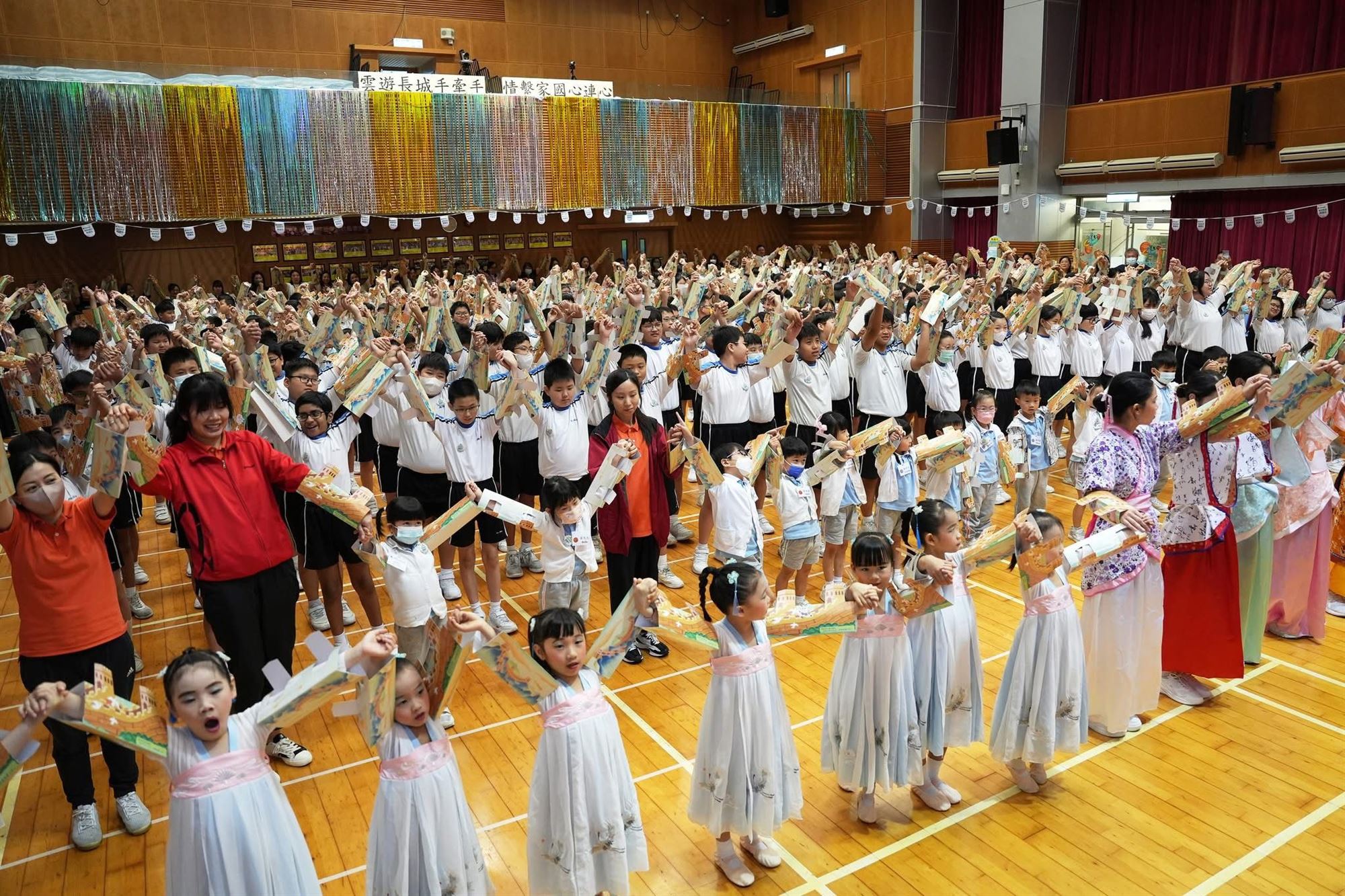 457師生手牽手築長城